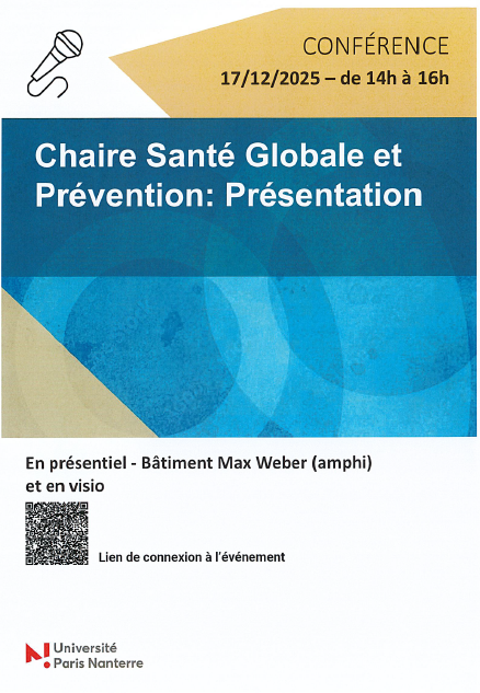 - 14h00 - 14h15: Présentation de la Chaire Santé Globale et prévention