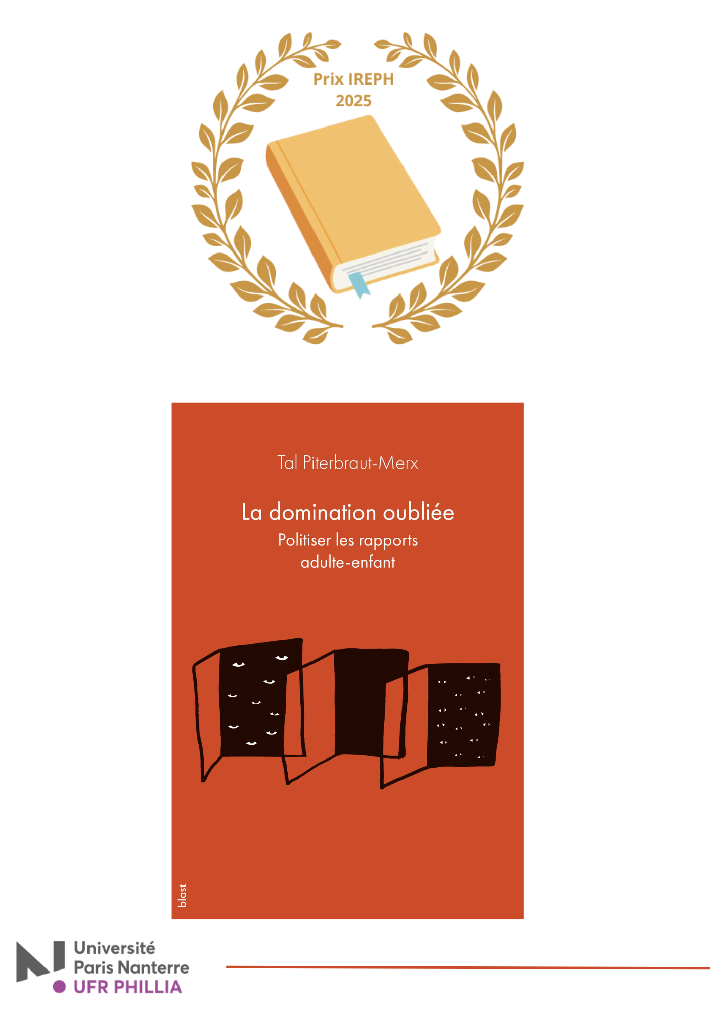 Un jury composé d’étudiants et étudiantes en master et de doctorants et doctorantes, ont choisi, parmi dix livres de philosophie (écrits et publiés hors du département) sélectionnés, de décerner le Prix de Philosophie de l’IRePh à l'ouvrage La domination oubliée : Politiser les rapports