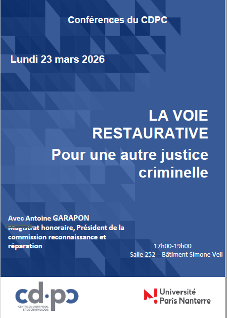 - Conférence LA VOIE RESTAURATIVE * Pour une autre justice criminelle23 mars 2026Conférence inédite : Antoine Garapon – Pour une autre Justice Lire la suite