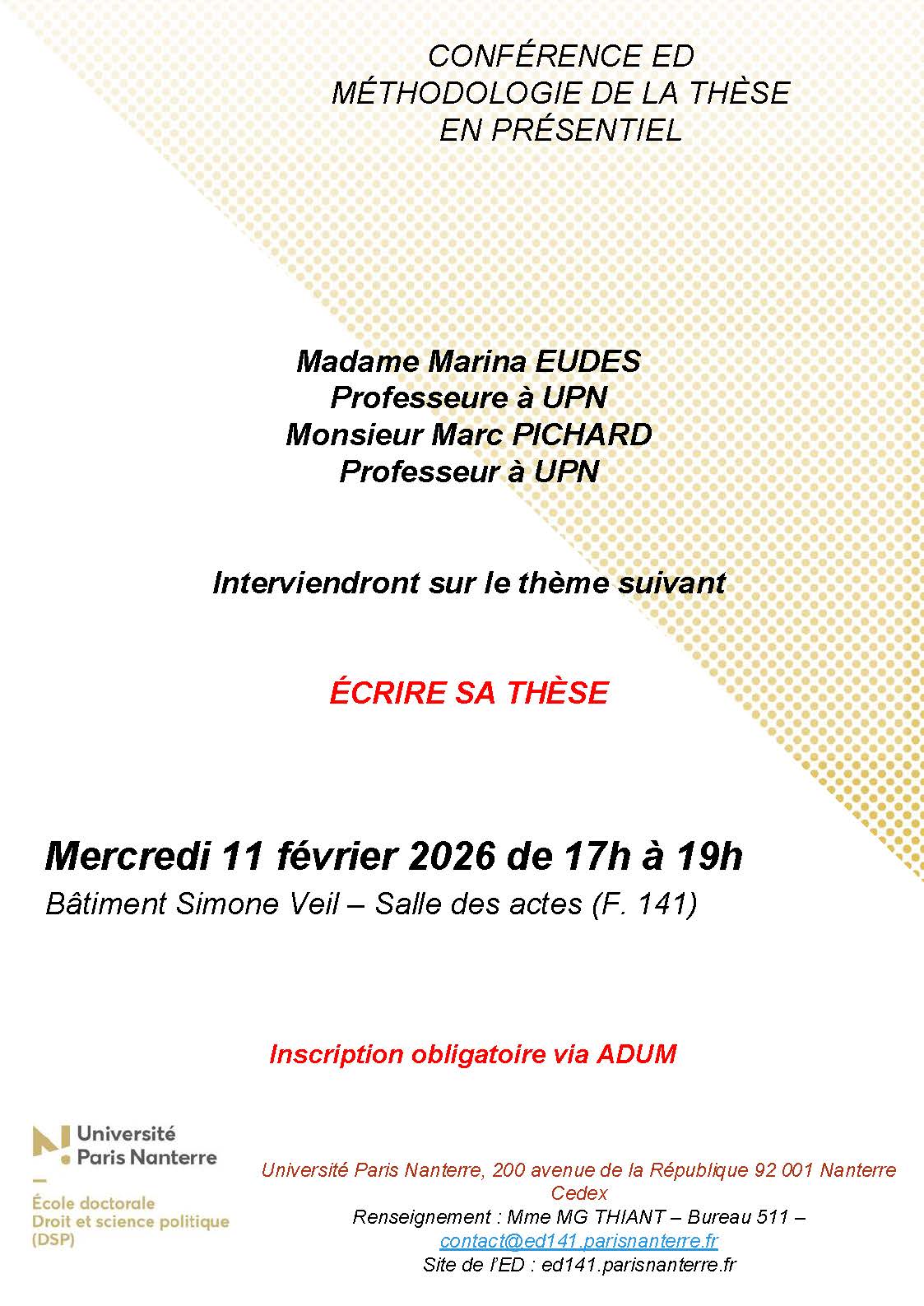 - Ma thèse en 5 minutes (février 2026)7 février 2026Des doctorant·es de l’Université Paris Nanterre présentent leur thèse en 5 minutes suivies de 10 minutes d’échanges avec le public. Lire la suite